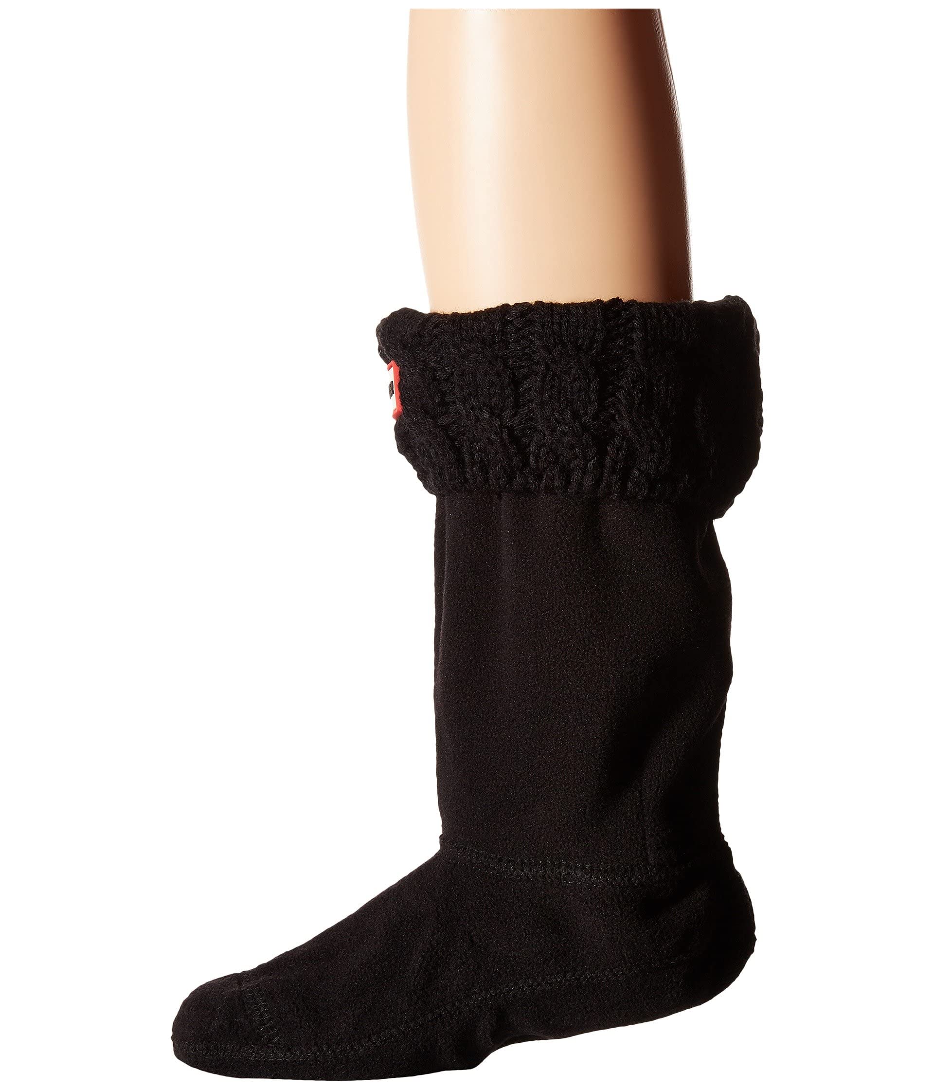 Always stay cozy with these super comfy Hunter Kids boot socks! Soft microfleece boot-shaped stockings to keep feet warm. Features a six stitch cable knit cuff. Designed to complement your kid’s Hunter rain boots. Signature Hunter logo on front. 100% polyester;Cuff: 100% acrylic. Machine wash cold inside out and tumble dry low.